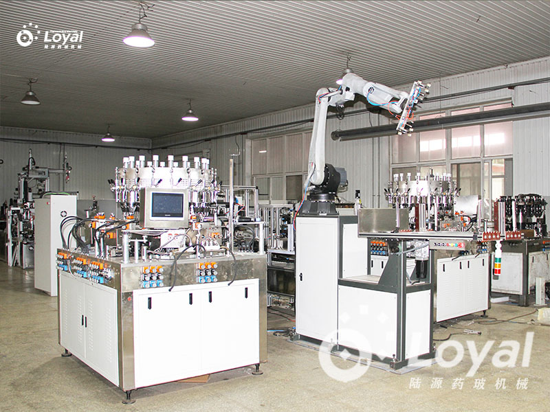西林瓶生產(chǎn)線(xiàn)包括:自動(dòng)上管、自動(dòng)成型、經(jīng)機(jī)械手轉(zhuǎn)換至前端檢測(cè)線(xiàn)(也叫生產(chǎn)管控)、檢測(cè)線(xiàn)檢測(cè)的項(xiàng)目:1、瓶口內(nèi)外徑 2、瓶身長(zhǎng)短 3、瓶身外徑 4、瓶口邊厚 5、瓶底內(nèi)凹尺寸檢測(cè);經(jīng)檢測(cè)后的合格品再用機(jī)械手夾盤(pán)轉(zhuǎn)換至退火爐網(wǎng)帶上,經(jīng)高溫減除應(yīng)力后再降溫,通過(guò)氣動(dòng)吸盤(pán)將回火后的小瓶轉(zhuǎn)換至后端檢測(cè)線(xiàn),后端檢測(cè)(也是重檢也叫終檢),經(jīng)后端拍照檢測(cè)項(xiàng)目
