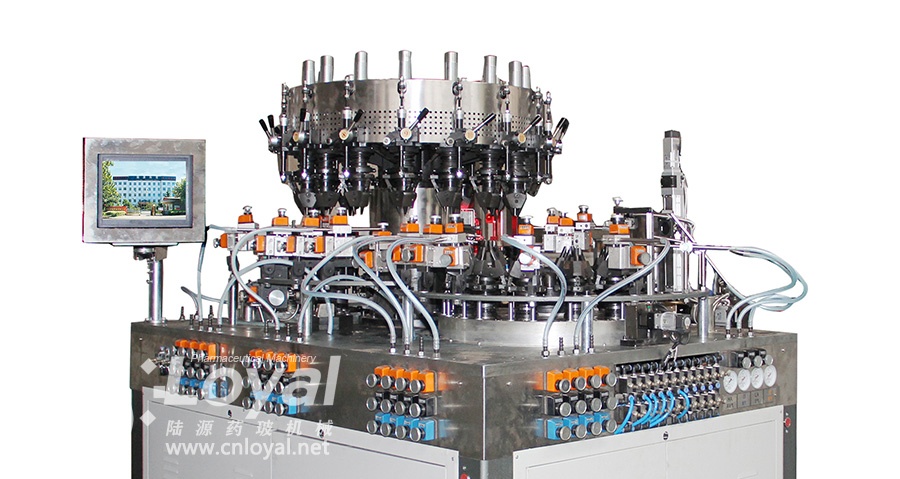 此機(jī)型適用于制造16mm-32mm 管徑的玻璃瓶,該機(jī)型采用A部上下雙夾頭設(shè)計,雙夾頭設(shè)計可以減小玻瑞管在生產(chǎn)過程中的晃動,增加玻璃管的穩(wěn)定性,提高產(chǎn)品質(zhì)量。其A部具有三套磨具,能很好的提高瓶口精度和質(zhì)量。B部具有8個工位,能很好的提高玻璃瓶的耐水性等內(nèi)在質(zhì)量。