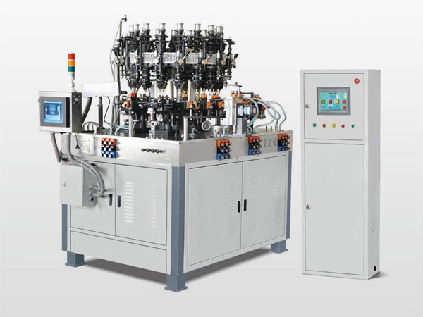 此機(jī)型采用PLC及伺服電機(jī)控制,穩(wěn)定性高,調(diào)節(jié)控制方便,生產(chǎn)產(chǎn)品精度高,適合制造16mm-32mm管徑的玻璃瓶。其主要控制部分均可通過觸摸屏修改參數(shù)來實(shí)現(xiàn),包括過槽速度、自轉(zhuǎn)速度、每個(gè)工位移動(dòng)距離、磨具速度、磨具移動(dòng)距離等。其A部具有三套磨具,B部具有10個(gè)工位。