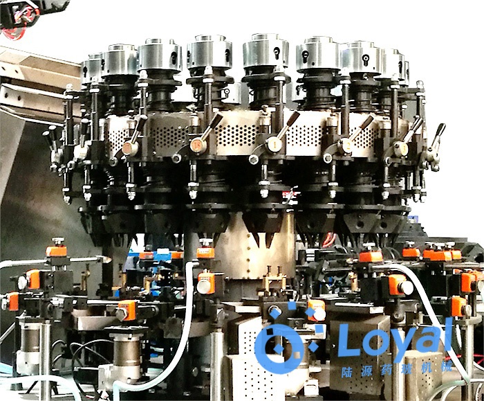 該機(jī)型采用立轉(zhuǎn)臥設(shè)計(jì),使得直徑較大的玻璃瓶在制底過程中能夠得到均勻的底厚,提高了產(chǎn)品的質(zhì)量。玻璃瓶制瓶機(jī),A部夾頭位采用雙夾頭設(shè)計(jì),模具三套能很好的提高瓶口的質(zhì)量。